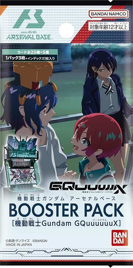 This is a Japanese Booster Box of the BANDAI Mobile Suit Gundam GQuuuuuuX Arsenal Base trading card game. Each sealed booster box contains 10 booster packs.