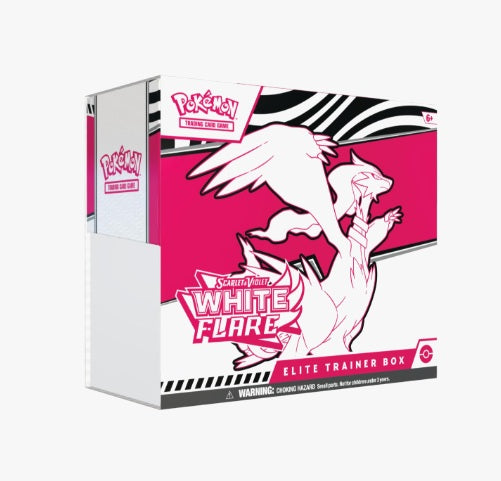 This is the White Flare Elite Trainer Box which is half of the final TCG Expansion for Pokémon Scarlet and Violet Era with the second half being comprised of Black Bolt. This Elite Trainer Box contains the following: